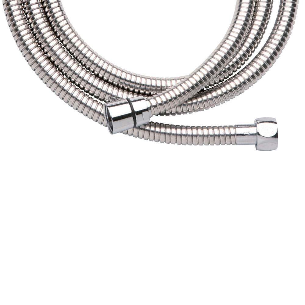 Flexo extensible flexo de ducha fabricado en acero inoxidable. extensible desde 175 hasta 200 cm tuercas de latón. Acabado cromo brillo. resulta perfecto para todas las griferías de ducha y bañera y todas las barras y columnas de 175 cm acabado cromo brillo fabricado en acero inoxidable
