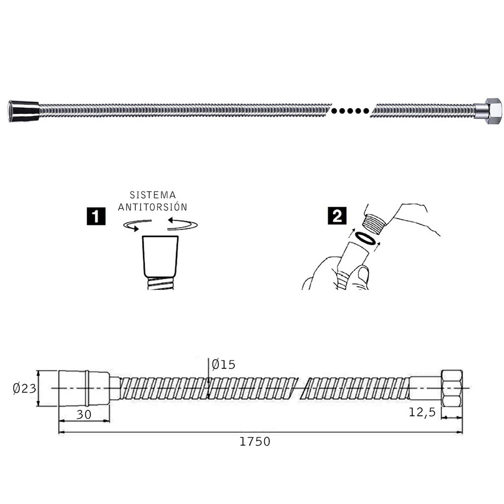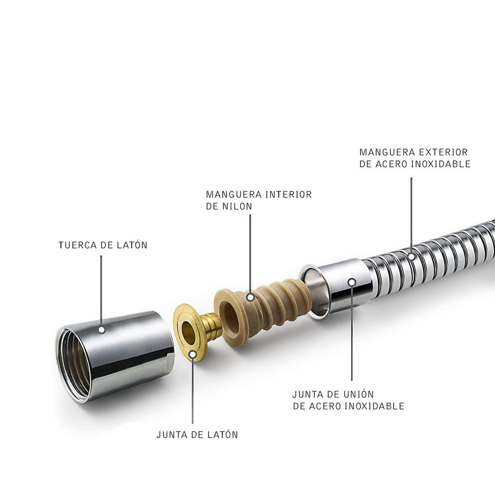 Flexo extensible TORNADO de 175 cm acabado cromo brillo fabricado en acero inoxidable